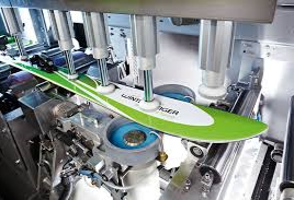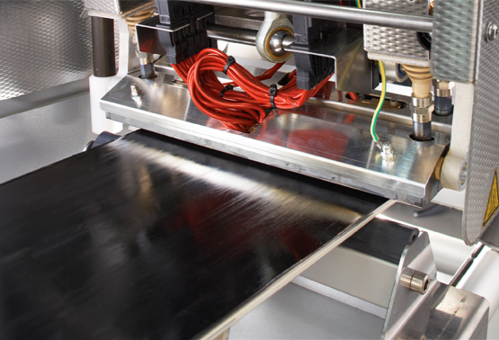 Der schwenkbare Doppelkammer-Aufschmelzkopf ermöglicht die prompte Farbumstellung des Polyäthylenmaterials. Die automatische Anpassung an die Ski- und Snowboardgeometrie mittels innovativer Ventiltechnik - die Ventile öffnen sich je nach Laufflächenbreite - optimieren die Materialzufuhr.